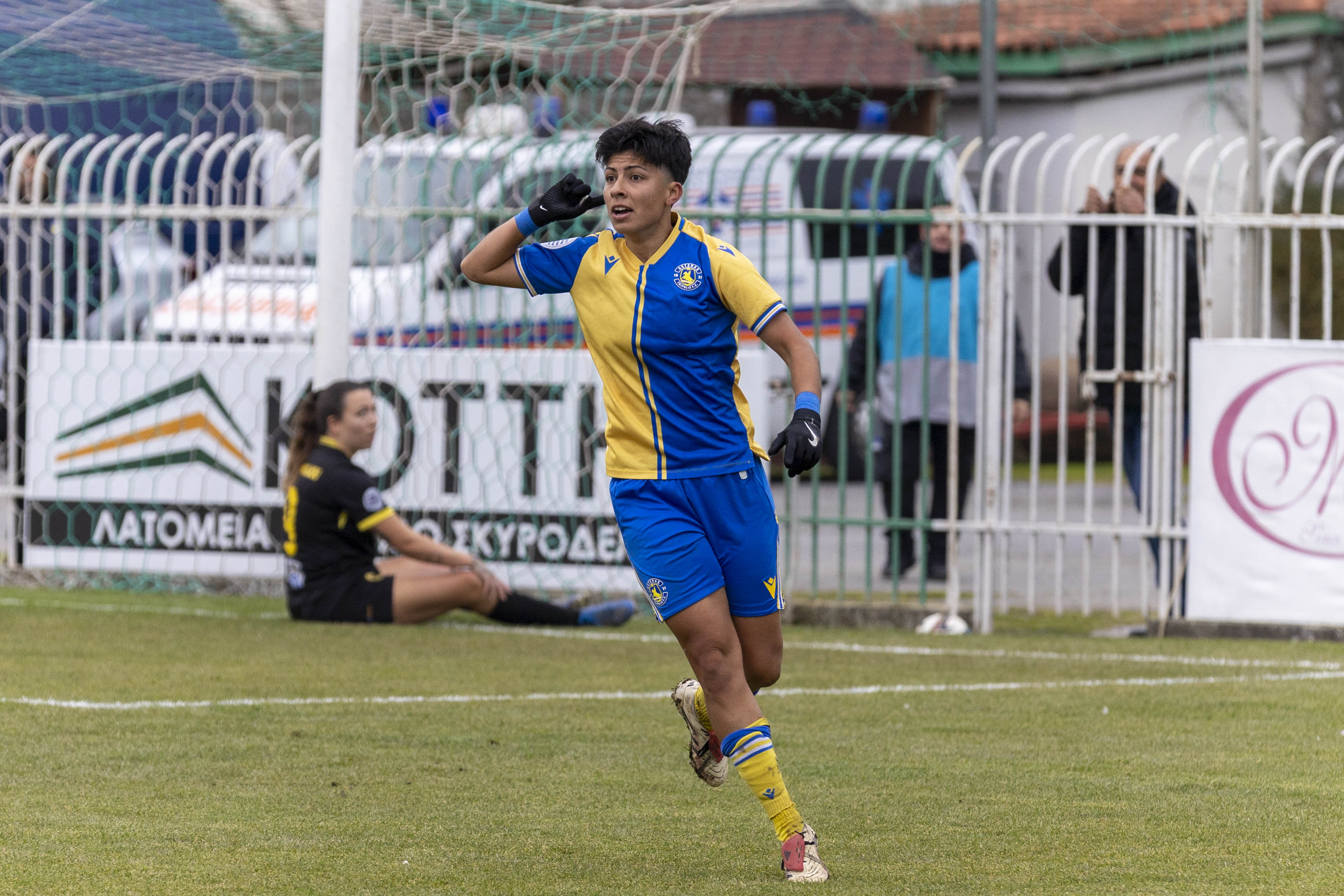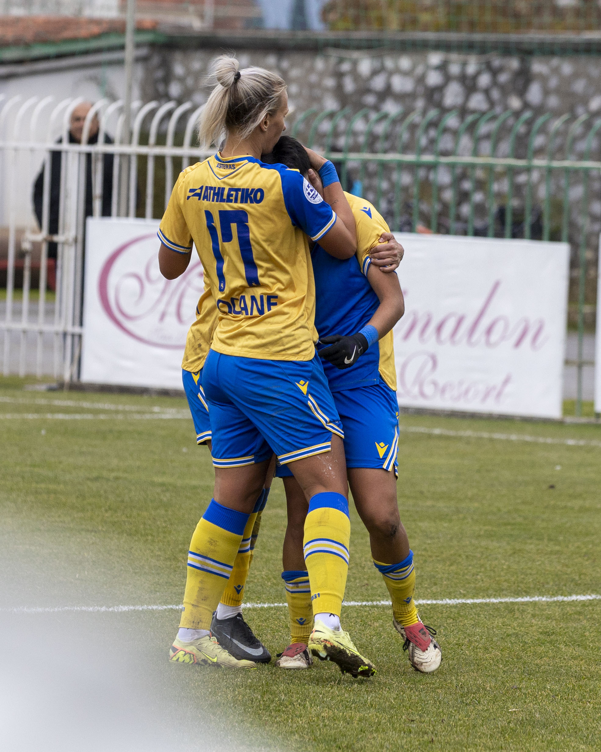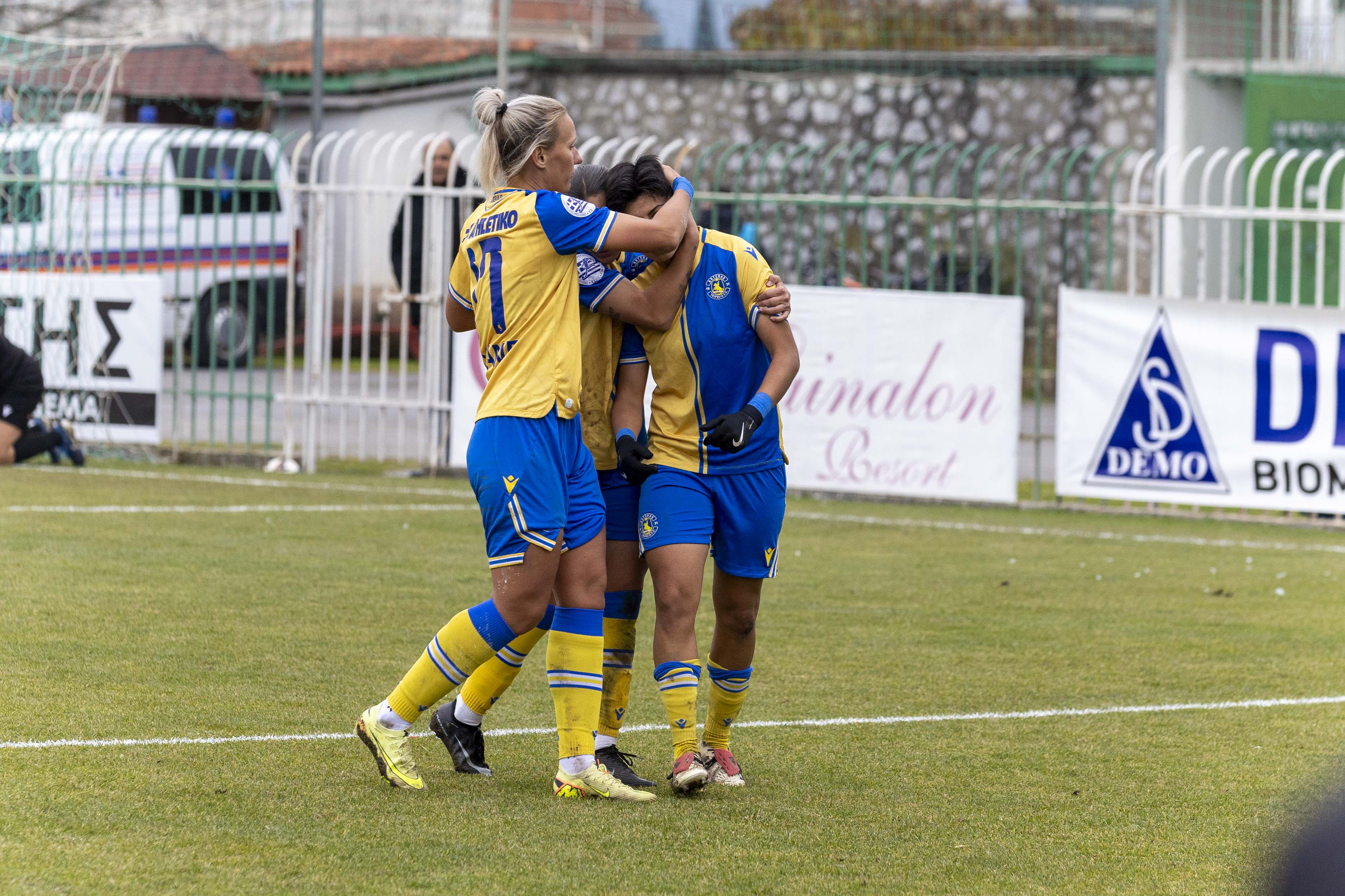 Στο 43' η ομάδα μας άνοιξε το σκορ με την Γκάτσου, η οποία έκανε την κεφαλιά, η μπάλα χτύπησε στο οριζόντιο δοκάρι και στην επαναφορά η παίκτριά μας έστειλε την μπάλα στα δίχτυα.