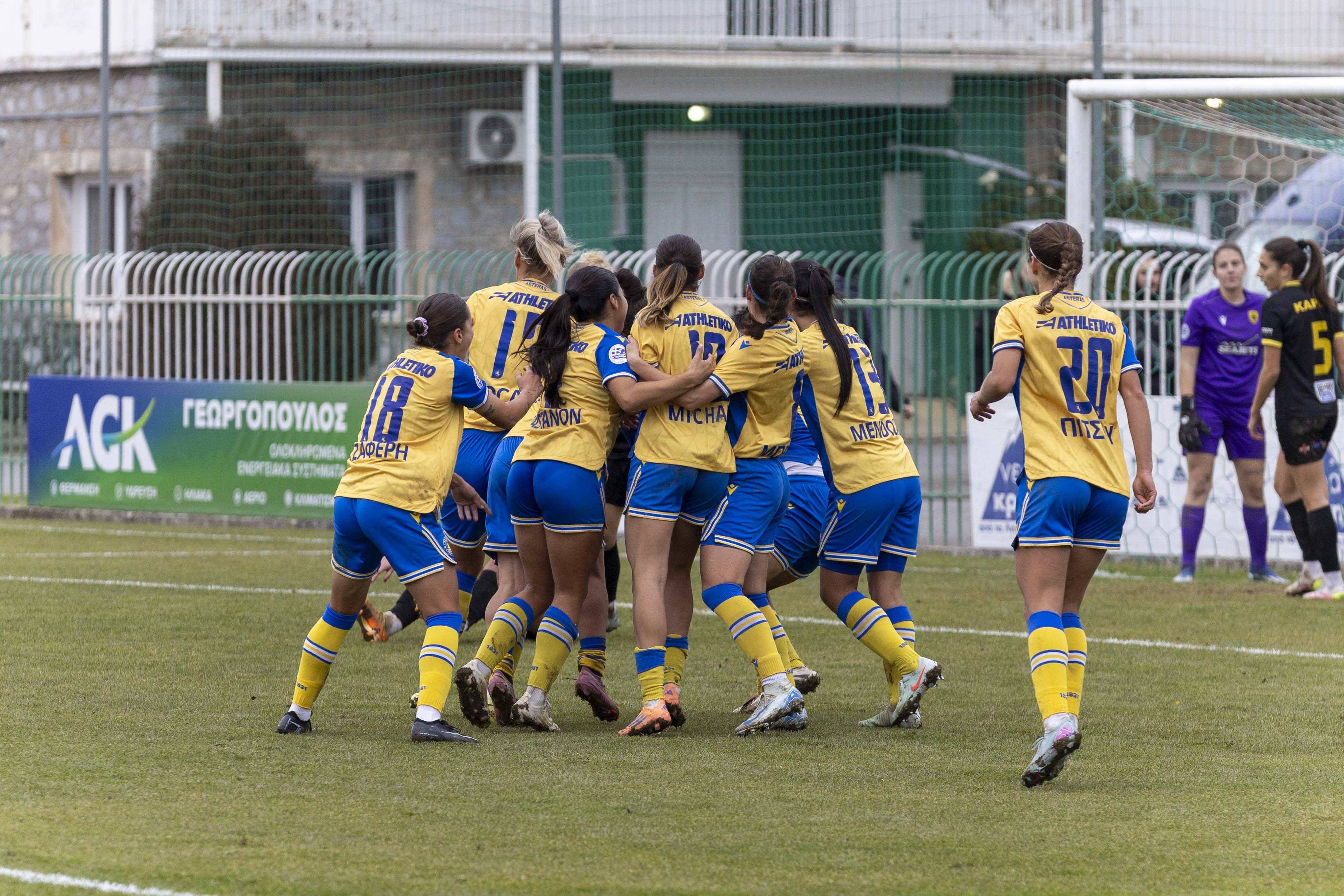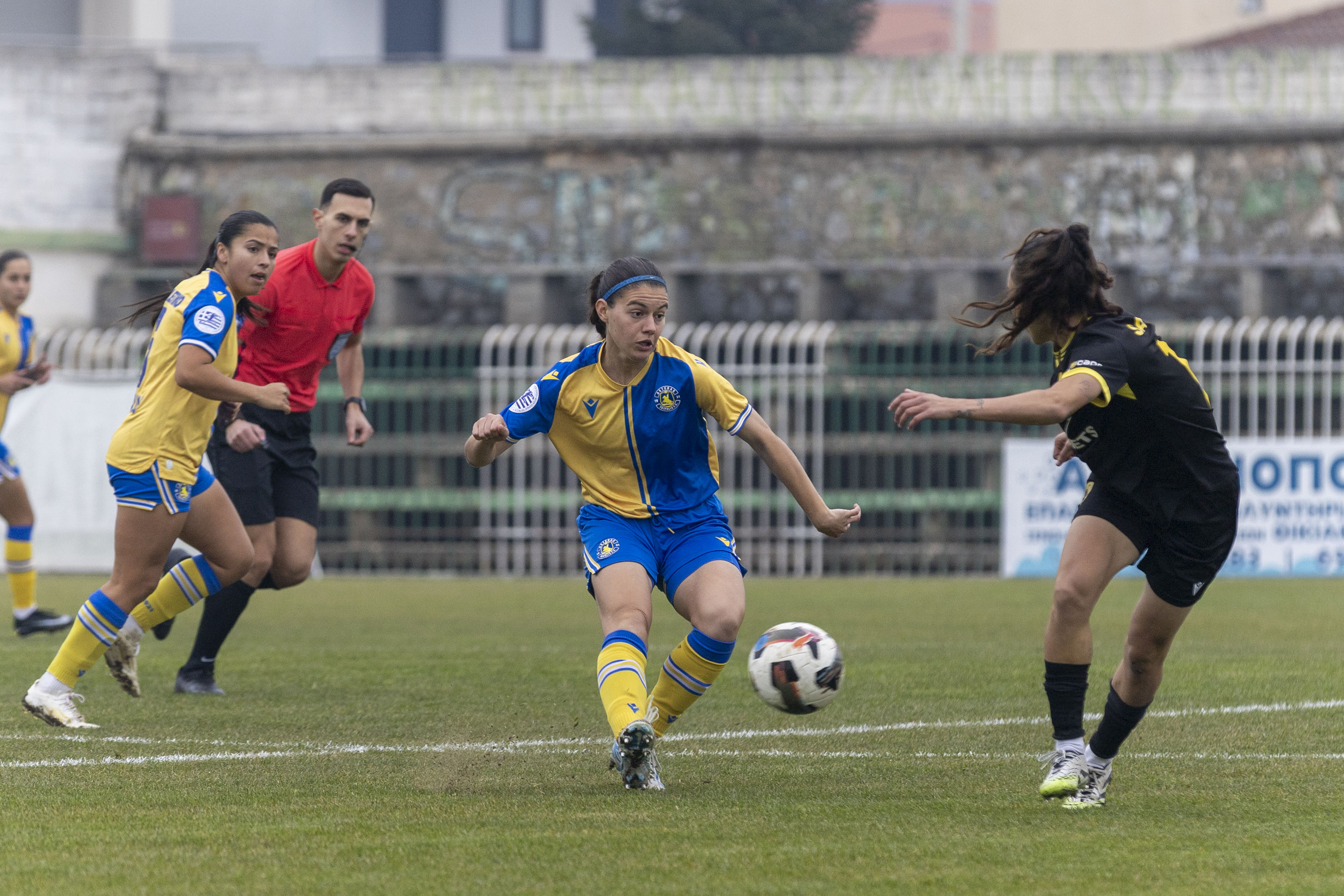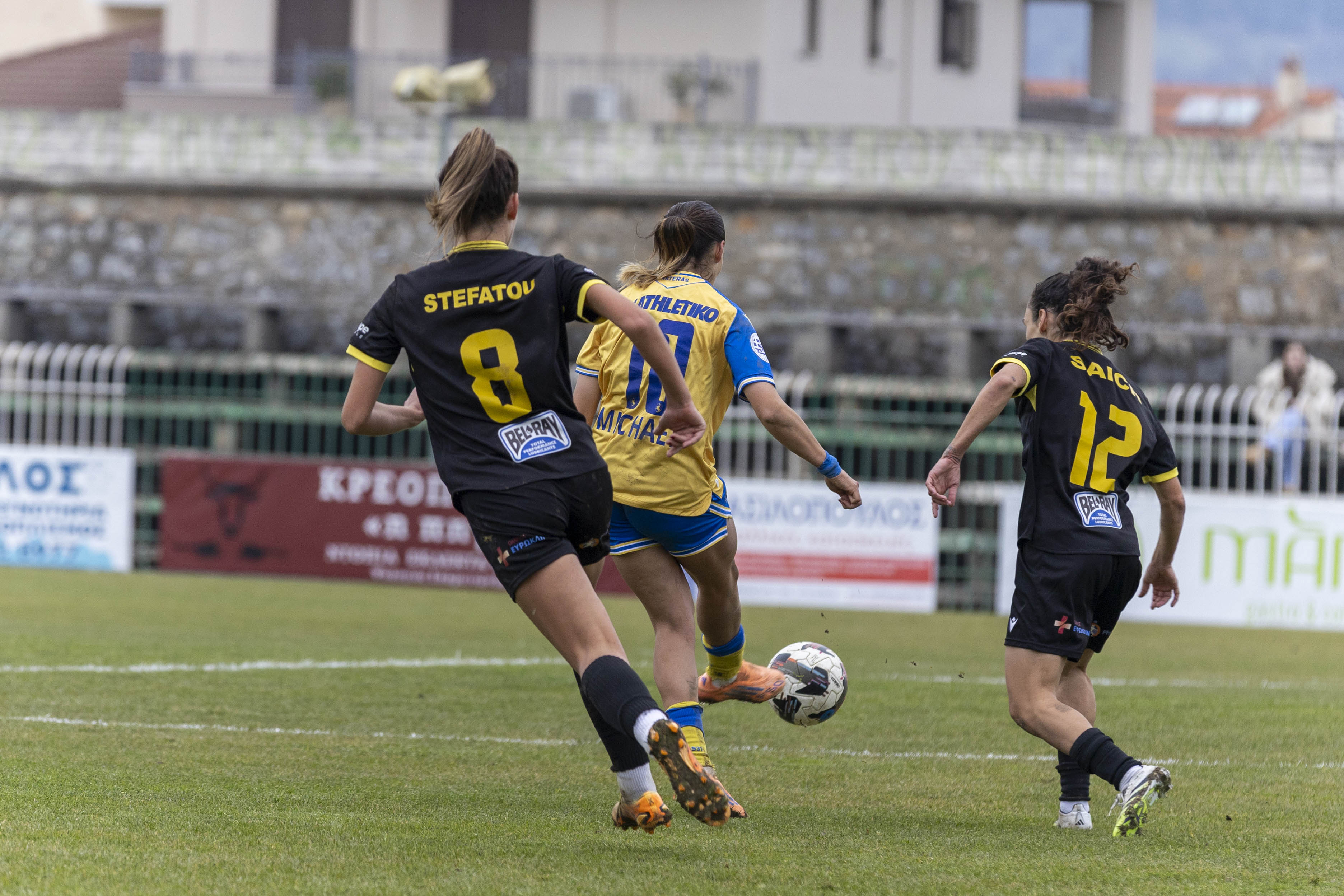 Στο πρώτο ημίχρονο οι φιλοξενούμενες απείλησαν στο 23', αλλά η Προξένου με καταπληκτική προσπάθεια έδιωξε πριν η μπάλα περάσει τη γραμμή στο πλασέ της Κόγκουλη.