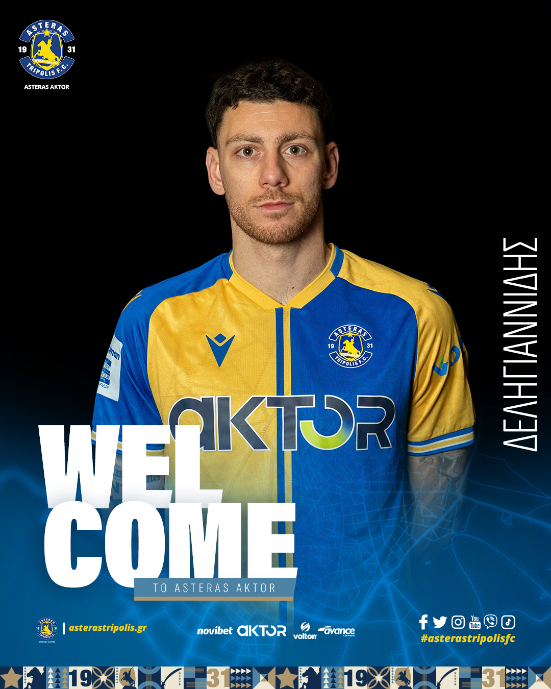 Η ΠΑΕ ASTERAS AKTOR ανακοινώνει την έναρξη της συνεργασίας με τον ποδοσφαιριστή, Παναγιώτη Δεληγιαννίδη.